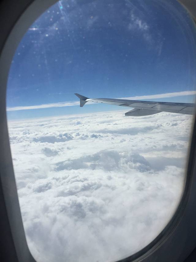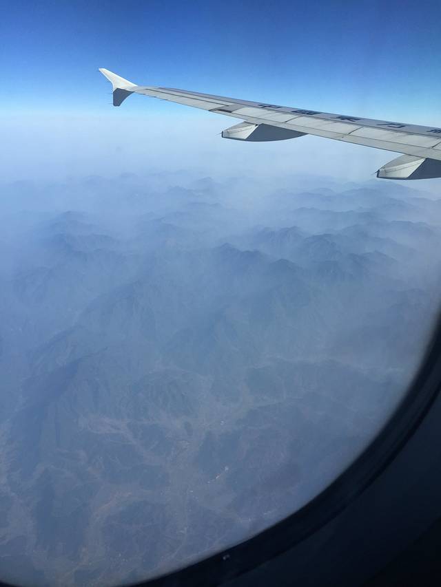 在飞机上,天同学特别想拍一张海岸线的照片,可惜云层太厚,等云散了,就已经到陆地了,有点小遗憾啊