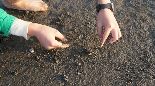 天同学抓到了一只小螃蟹