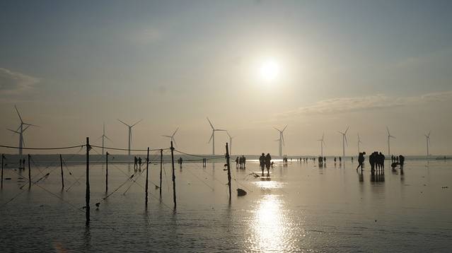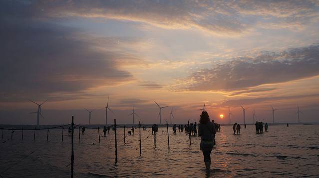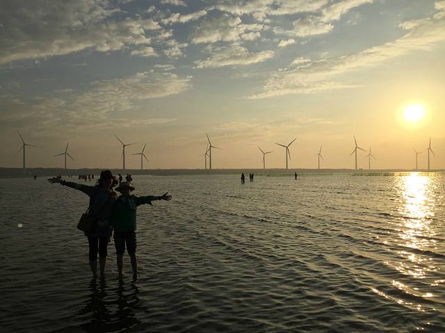 由于高美海堤建立后泥沙不断淤积,包括潮溪、草泽、沙滩、泥地的湿地生态系统逐渐形成,成为底栖生物、鱼贝、水禽的最佳栖息场所。走在木质的栈道上,就这样沉浸在由醉人的落日、漫天的晚霞、悠悠旋转的风车编织出的美景中吧!