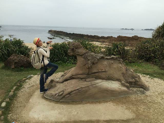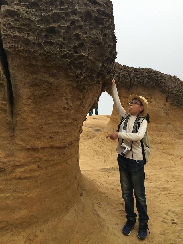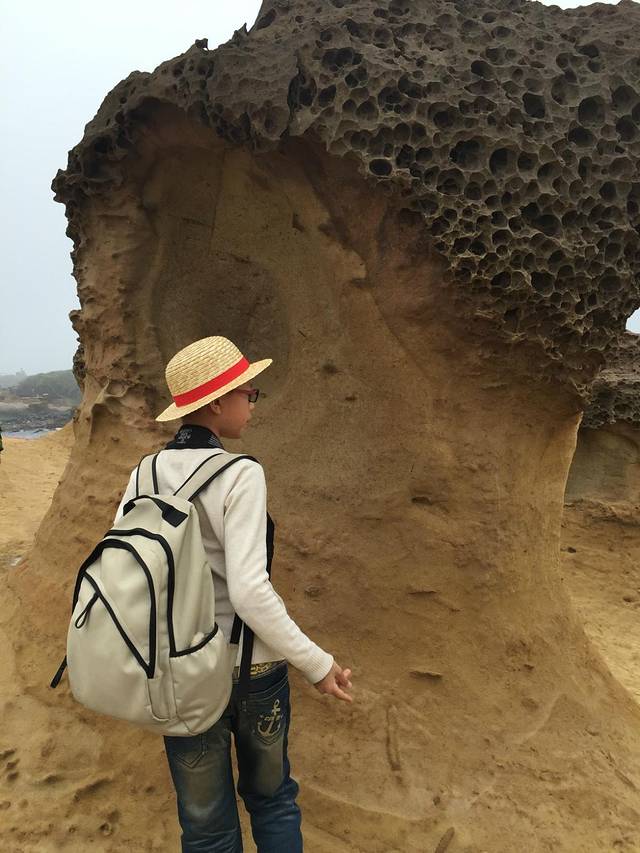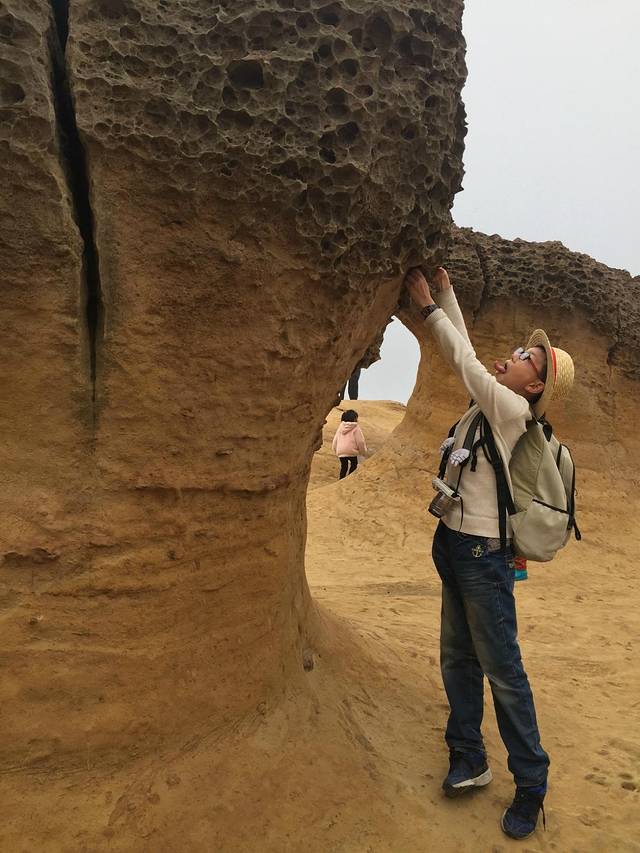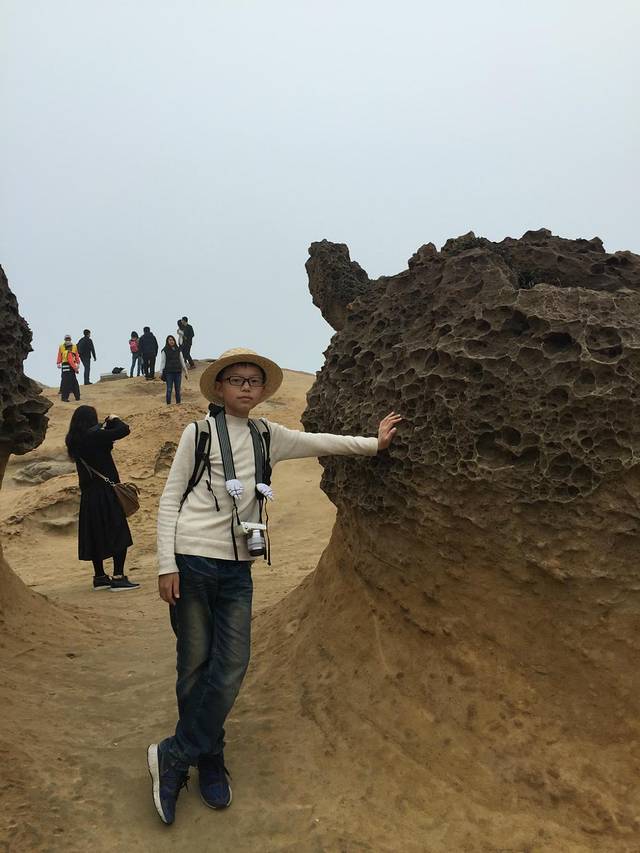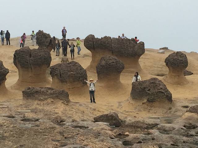 野柳地址公园,加水侵蚀形成的天然地质地貌,世界奇观之一,,最有代表性的是女王头,可是有太多的游客在排队,我们就放弃了。远远的拍了一张。