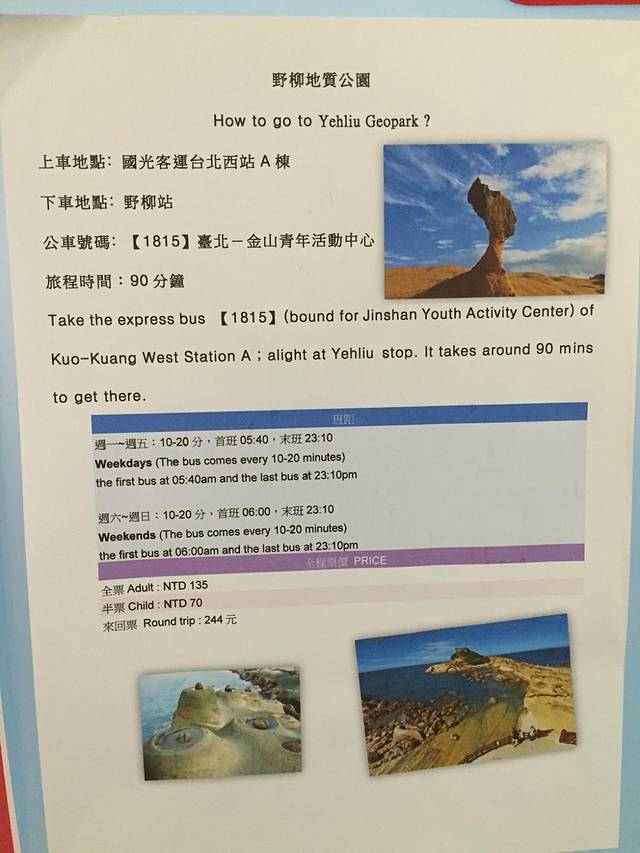 墙上有各种资讯供游客选择,有不同的语言版本。我们准备一下去野柳。