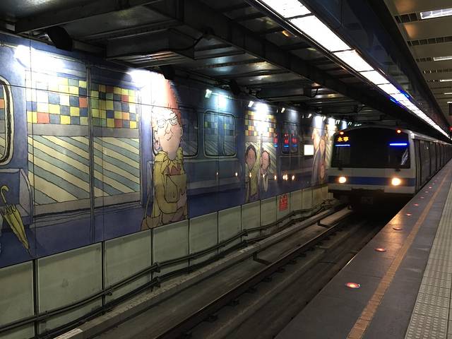 南港的捷运站,全部都是几米的画,好像走在童话世界一般,这才是真正的地下铁