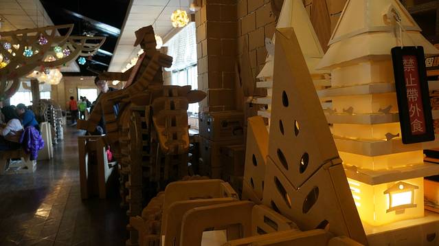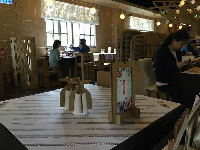 纸箱王创意园里面的所有东西都是纸制作的,包括帽子、衣服、包包、餐厅里的东西也全是纸制作的,小朋友都喜欢这里。小瑞士花园,天妈个人觉得没有太大的意思,就在里面喝喝咖啡吧,天同学对里面的植物还比较感兴趣。而陈先生就一直在外面等着我们。
