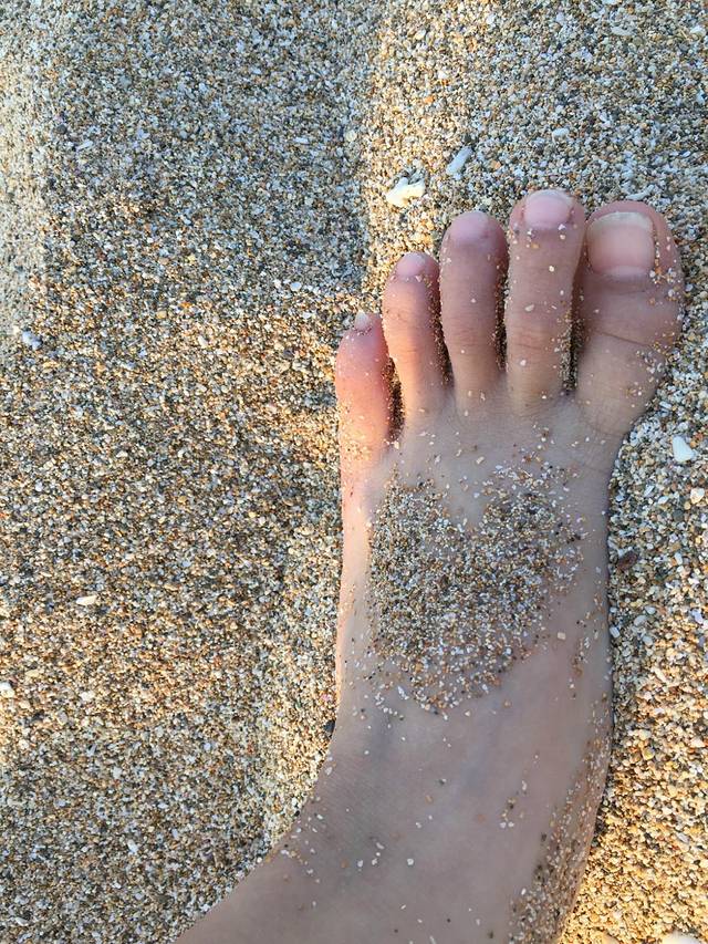 天同学带着脚丫上的爱心说:妈,送你。