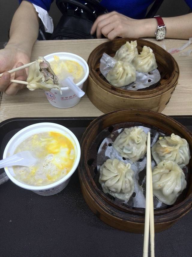 这就是我们的豪华1元早餐,左边就是花生汤,右边是大大的饺子