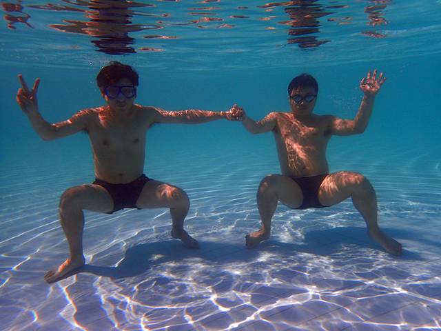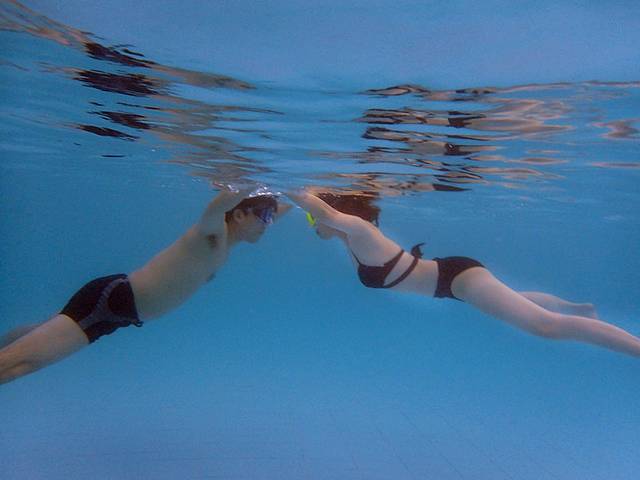 今天去泳池游泳,旱鸭子居然在麻袋学会游泳了:)