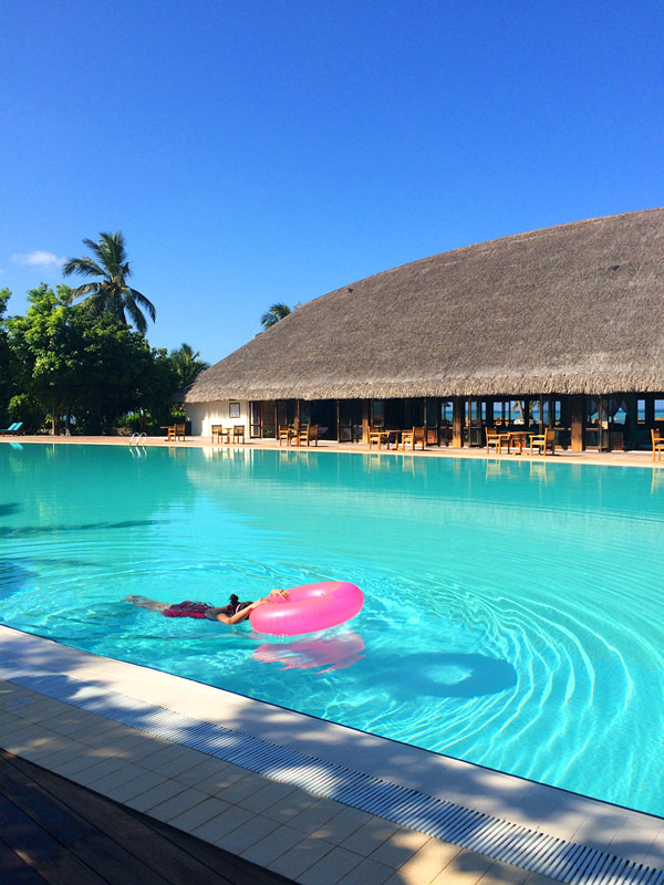 DHONI BAR 泳池~昨晚的鸡尾酒晚会~我们去夜钓,没参加,小遗憾!