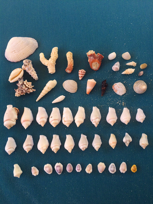 拾捡的贝壳和珊瑚(有强迫症的孩纸),要准备回程了,不舍~