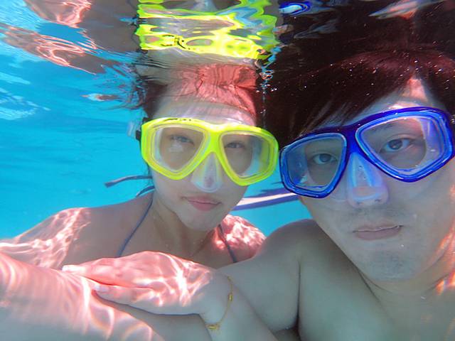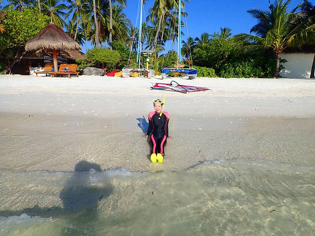 彻底迷上浮浅啦!!拉着老公出来浮浅,但幸福岛沿海浮浅还是不太好,只能出去浮浅,沿海看不到什么~我背后是岛上的水上中心,建议大家可以直接去水上中心玩浮浅,快艇出海,包括浮浅、看海豚、一共120刀,有点小贵,但是拉到附近的无人岛,据说浮浅可以踩到地的,适合我这种害怕的,嘿嘿,全程还有摄像,还送一个划船,只可惜我们昨天已经在前台那边玩过了,就没再报了~