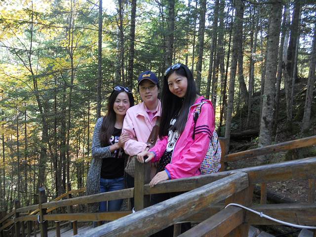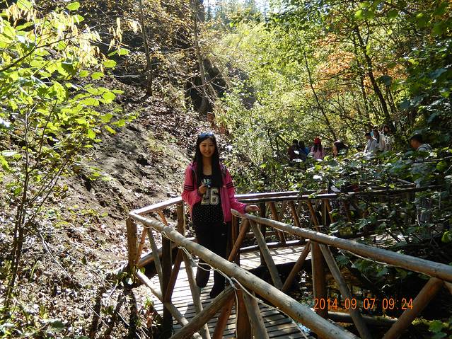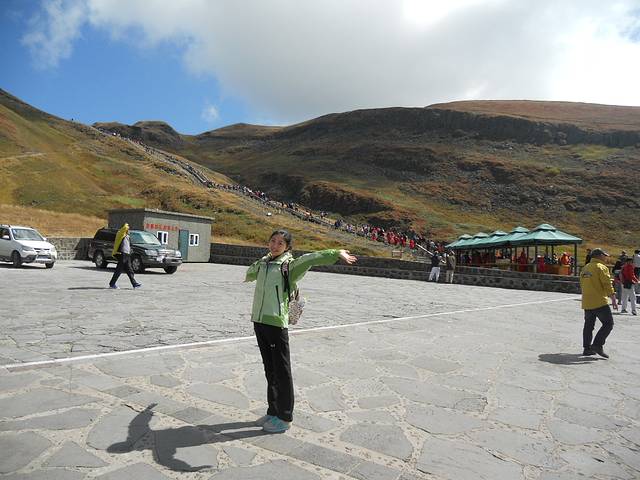 终于下车了,就要登山了,故做飞行状~哈哈这时估计10点左右吧~看看我身后的登山队伍,十分壮大~