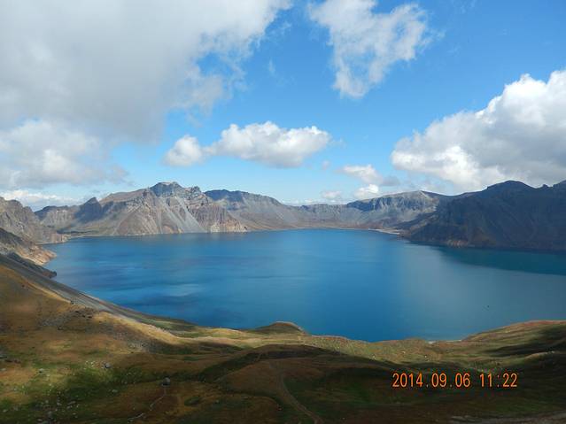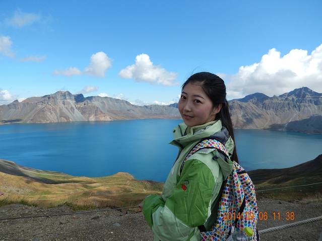成功到达顶部,顺利看到天池~真的非常美,一汪蓝色的水就那么静静的呈现在你眼前,风云变幻,波澜不惊。不过没有看到传说中的水怪O(∩_∩)O哈哈~