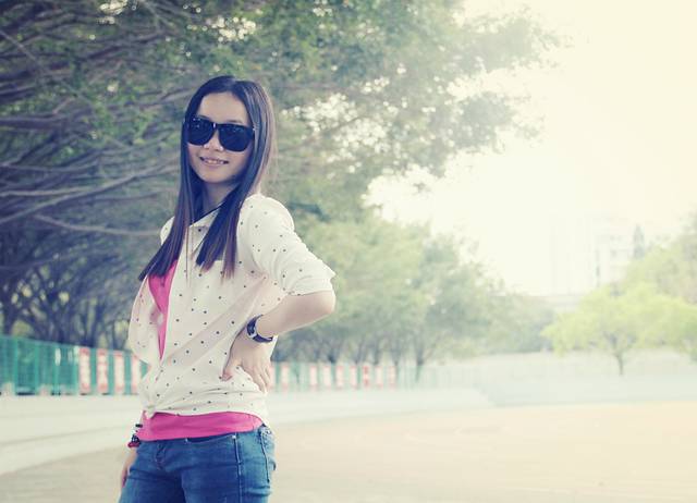 有没有很酷?~~~能给我自恋一下嘛!刚买的墨镜,试试效果~~~