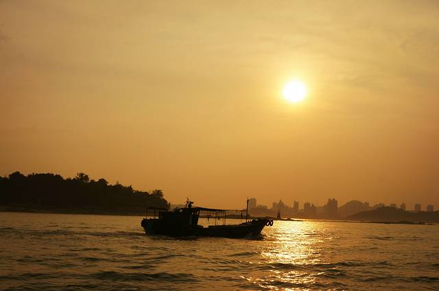 轮渡码头,在船上拍的,日落很美!