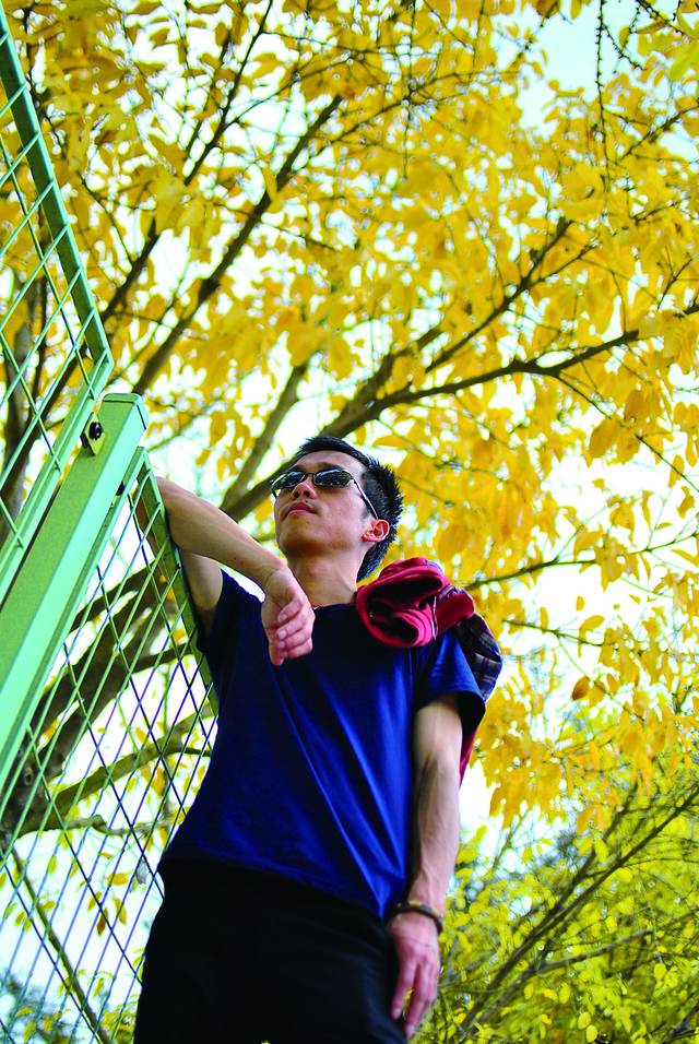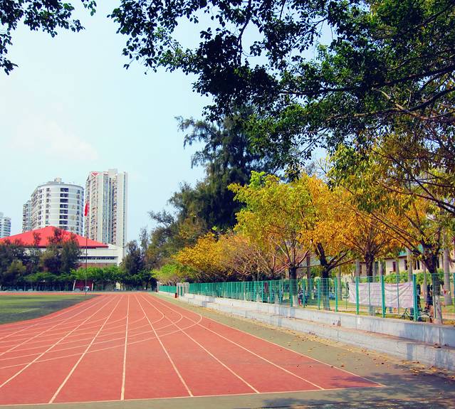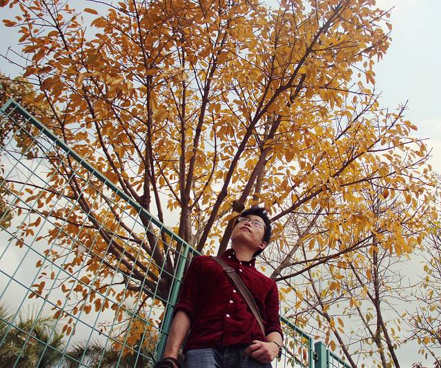 我们那会在操场的阶梯上休息,他俩男生就在这黄叶子的树下各种仰拍