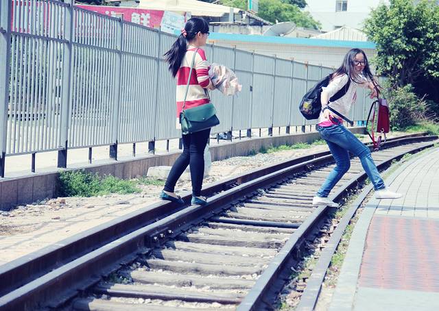 这个嘛,其实我本身是两只脚撑着铁轨的,样子很不雅,他们居然偷拍,然后我就快闪,就这样了