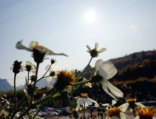 这种不知名的小野花很漂亮,再加上这美美的天空作背景,即使糊了我也爱!