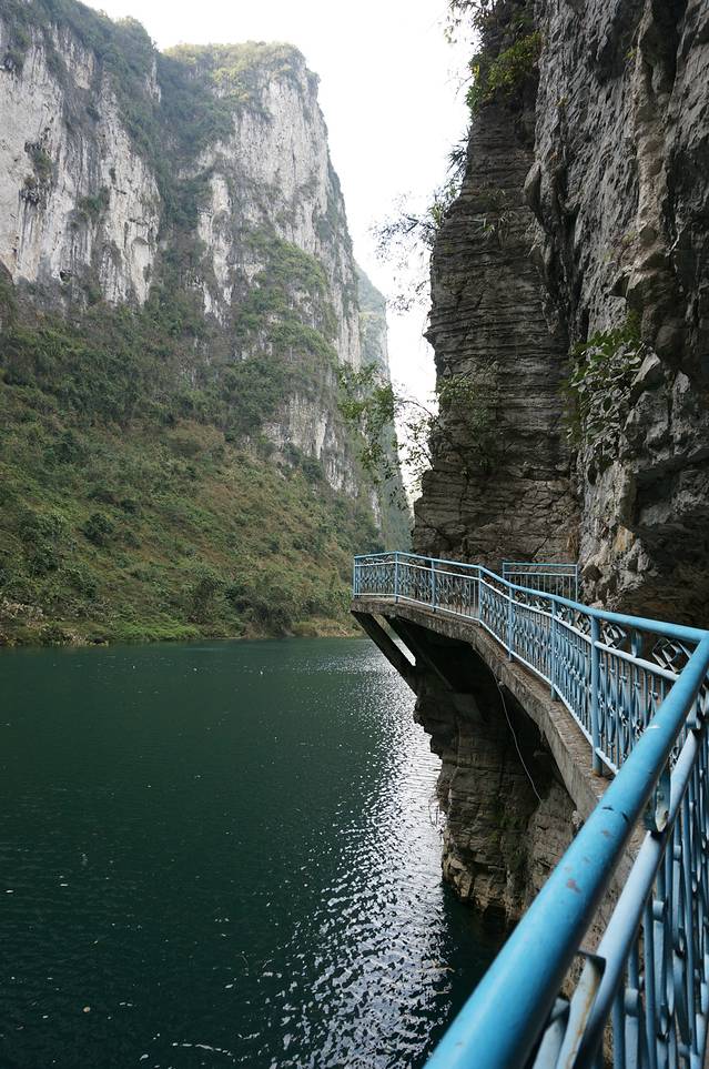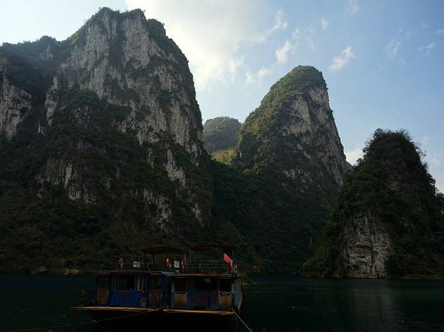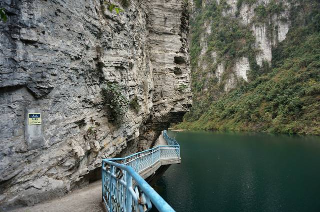 可以坐游船在山水之间穿梭,可惜我那天去的太晚,最后一班4点钟的船又不开,所以没有坐船,只能在栈道上走走了。