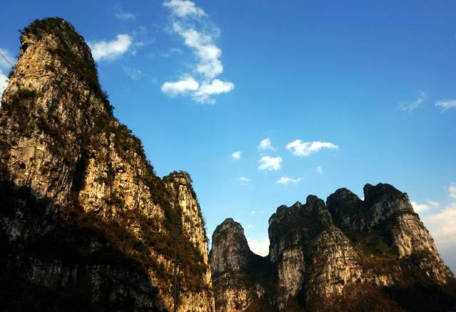 家乡一部分山是这样的,没有什么草木,直溜溜的冲上云端。