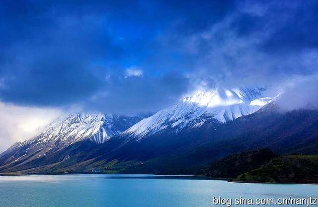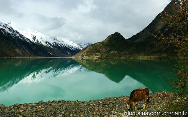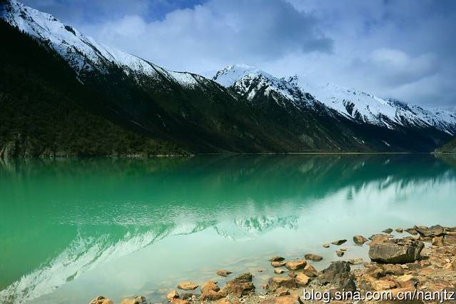 五月的然乌湖冰面已经消融,四周的雪山高耸俊俏,白云缠绕,积雪终年不化,山腰青黛如墨,湖岸绿草芳凄。湛蓝的湖水清澈如镜,清晰地将雪山倒影在安静的水面,并随着云层漏下的光影变幻着梦幻般的色彩。藏民将湖边五颜六色的卵石堆砌凝望,似乎在诉说着然乌湖的来世今生。