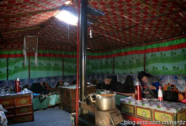 6、帐篷住宿推荐:“那木索地旅馆”,藏族老板娘叫“阿旺玉珍”,年轻妩媚,会简单汉语,夜晚会在帐篷内升起炉火,编着围脖看我们睡去,火光映在她高原红的脸庞显得风情万种。预定电话:13659560118.