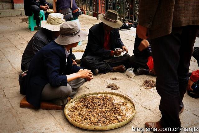 虫草一般由当地多年从事虫草收购的藏人从牧民手中收第一道,按产地、大小、干湿等条件以质论价,然后转手给二道批发商,再由二道批发商卖给医药公司。多数的批发商来自甘肃。