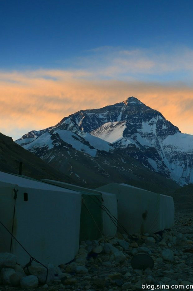这是2011年5月我的家人在珠峰大本营拍到的日出,才过了两年,同一个月份同样的日出,明显比我的上一张照片积雪要厚很多。所以,珠穆朗玛很忧伤!