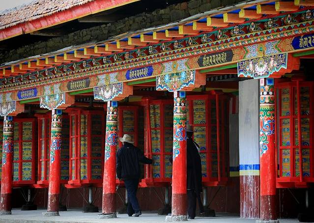 川藏南线318从雅安到新都桥,从新都桥向北到塔公寺、塔公草原驾车大约半小时,沿途省道215风光壮美,路况好。也许是因为塔公寺的人气和佛缘,寺庙的周围形成了一条古老街道和农舍,每天早上都有三五成群的藏民先去转了塔公寺,而再去劳作。
