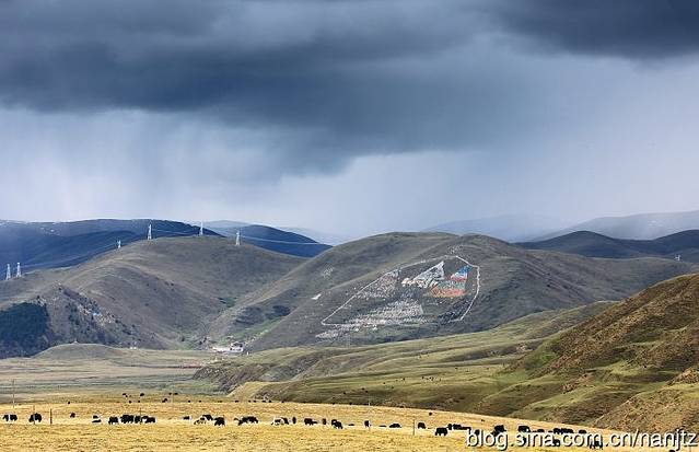 塔公草原深处是一片逐渐上升的缓坡,最终连到海拔5884米的雅拉雪山,春夏南来的暖流把雪山水汽形成的云层让这片草原的气候变化莫测。