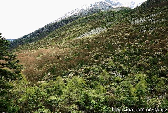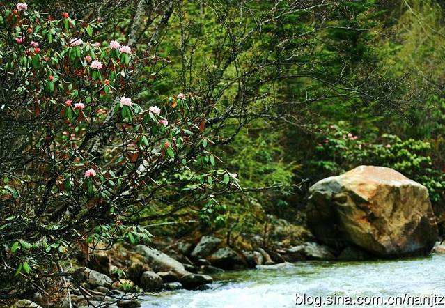 青藏高原的五月,暖风夹着轻悄的寒意,从康定县城沿木格措景区道路叉到布龙沟方向,顺着小溪北上,一条几十公里人迹罕至的峡谷小道,硕大的高山杜鹃花姹紫嫣红,开满山野,被当地藏民誉为“杜鹃谷”。