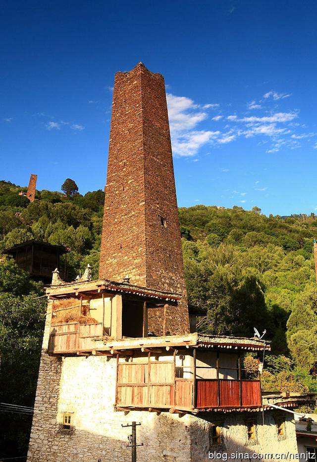 碉楼和寨房,原本是两类不同性质的风格建筑,在时光的流逝中,二者已有机地结合在一起。外形上,既有寨房的特征,又有碉楼的形态。碉楼寨房一般为三层,也有四层的,一侧还配有厢房。