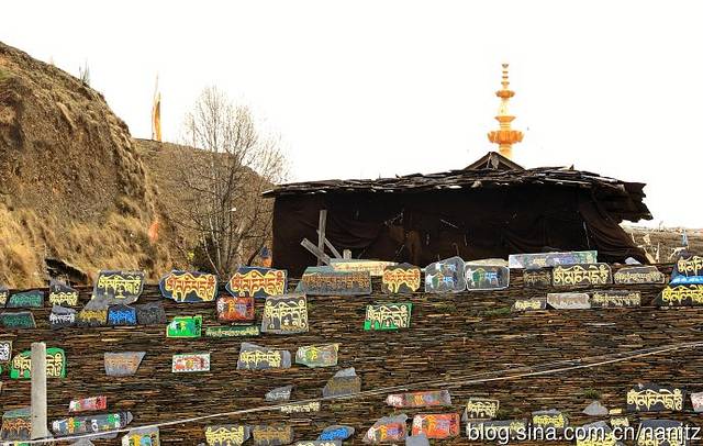 村的中心是一个石经墙的寺庙,由数十万片刻满经文的石片堆砌成墙。