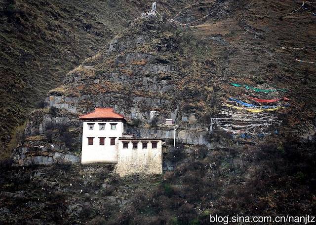 按进藏和出藏的时间顺序:川藏南线318穿越世界高城理塘县城,海拔4000米,这是理塘至稻城216省道途中,属于白教的“蚌普寺”附近的半山腰,海拔约3500米的民居,一栋是典型的藏式建筑,一栋屋顶是汉式结构,藏汉结合。