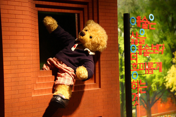 之后我们就进入了泰迪熊博物馆。小熊造型或精美或可爱。并且用这一群萌物展现韩国到历史文化、民俗风情以及重要景观景点,真正起到了寓教于乐到作用呢。相信即使是不爱学习的小朋友,看到这些小熊也会在不知不觉中学会了些小知识吧。