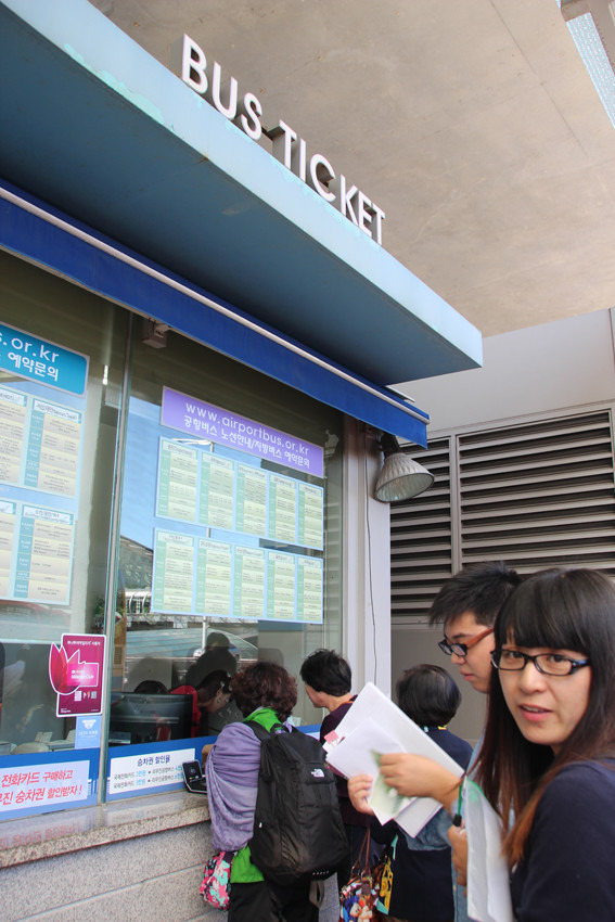拿到wifi以后我们去便利店买了T-money卡,我还顺便买了一瓶香蕉牛奶路上喝。接着我们就出门买机场大巴车票啦。我们定的青旅在明洞附近,所以我们选择坐首尔站高级机场大巴6001路。