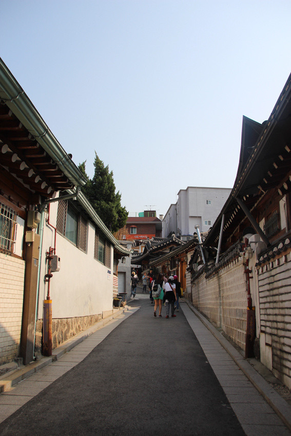 吃晚饭我们先去北村韩屋村感受了下韩国的历史文化,不过也就是走马观花。这片历史街区保护的不错,干净整洁,地面上还有一些铜铸的小标示告诉游客可以在这里取景照相,但个人认为很多角度都可以拍出漂亮的照片。在韩屋村的一个个弄堂里还穿插着一些餐馆和民俗体验店,初到首尔的游客还是值得来体验下的。