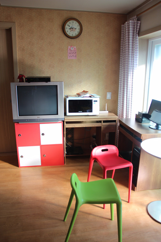 屋内的冰箱、电视剧、微波炉、等等设施也是一应俱全的呢