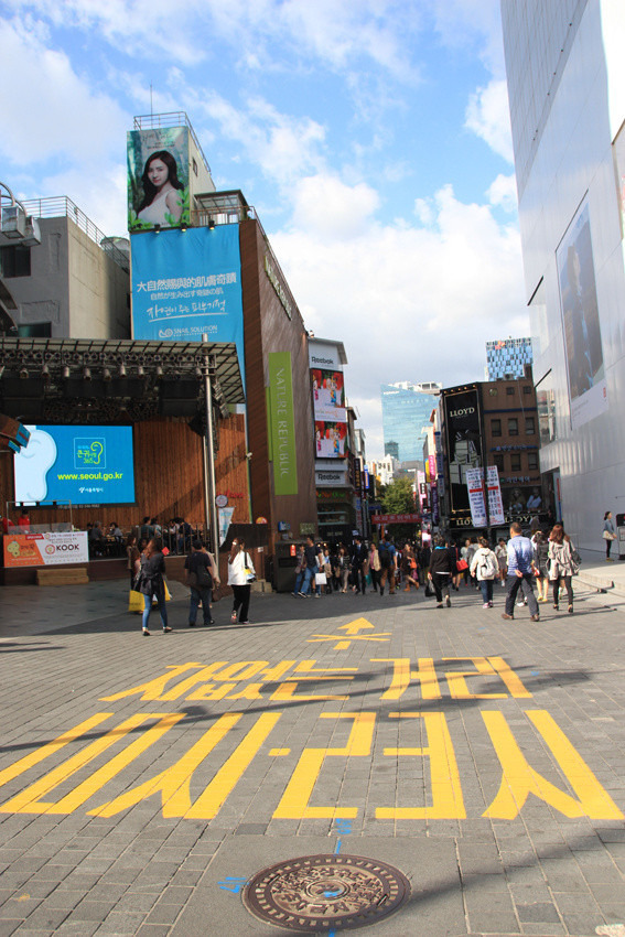 大巴停到了一个离明洞很近的酒店门口,不用过马路继续往前走,就可以走到传说中的明洞了。