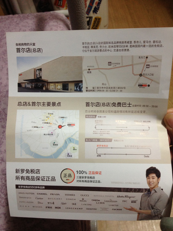 重点出现了:韩国的优惠券太给力了。如果要去新罗免税店一定要打车去。这样无论几个人同行,每个人都能获赠20000韩币的优惠券。其实第二天我们又在烤肉店拿到了优惠券,也是20000元,只要消费满1美元就可以使用了,而且这两张优惠券可以同时使用,真的相当于白送了两百人民币啊~这也是为神马我们最后一天又去了一次新罗免税店。