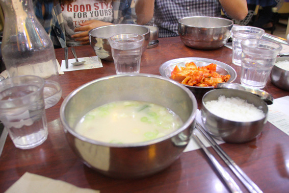 第二天一大早我们还是奔赴明洞喝神仙雪浓汤。这家店貌似口碑不错,一清早就排起了长队呢。