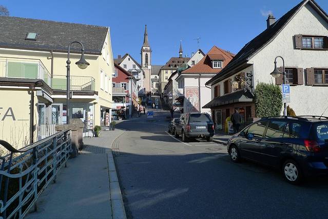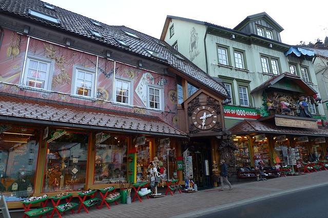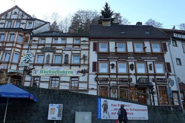 坐火车北上Triberg,小镇地处一条狭窄的峡谷内,被三座山脉环抱,其名称也由此而来,是钟表大街(Deutsche Uhrenstrasse)上的重要一站。