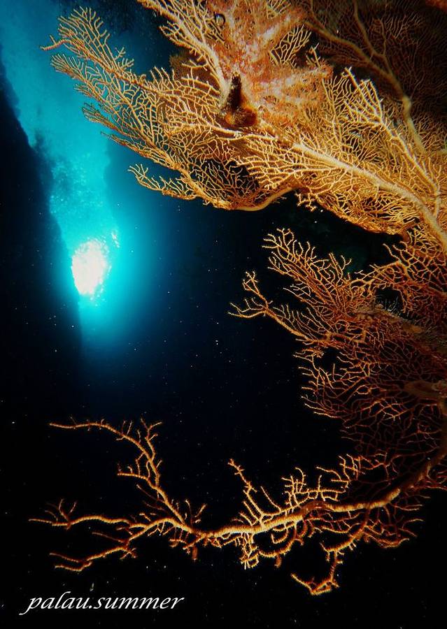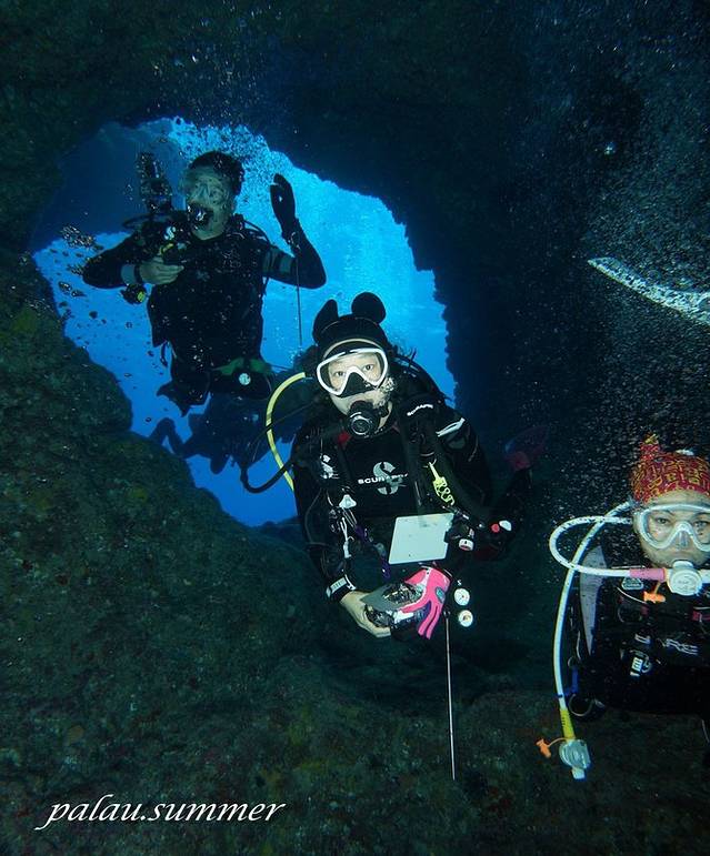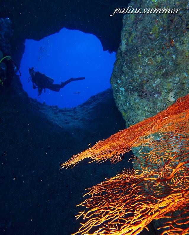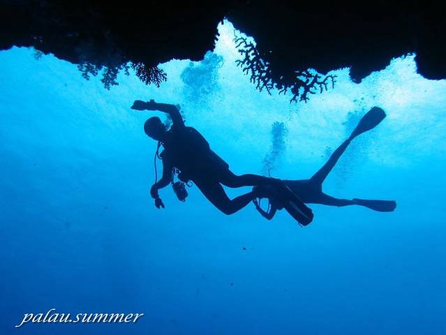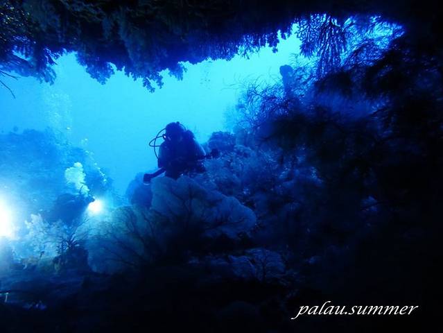 蓝洞是去帕劳(Palau)不可缺的潜点,帕劳(Palau)的蓝洞的特色为多孔的入口,从水底约三公尺处有四个入孔通入蓝洞,光线从四个洞射入反射蓝光,行程神秘美丽的景象,底部的哭洞非常宽广,约在二十公尺处有一横洞通往外界的悬壁,在横洞的上方侧面长着许多的柳珊瑚,深不见底的黑漆深渊里可遇到各种鱼群。