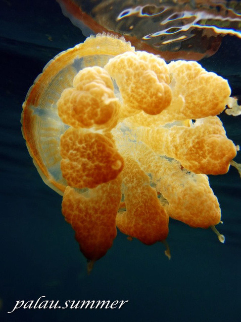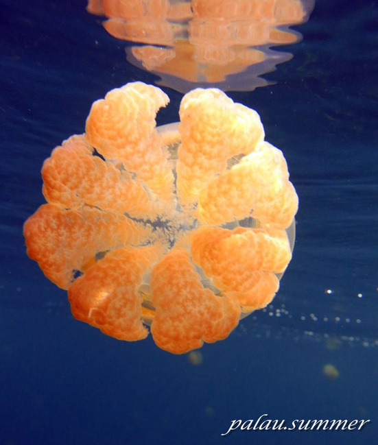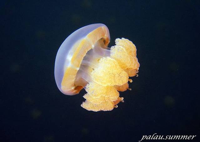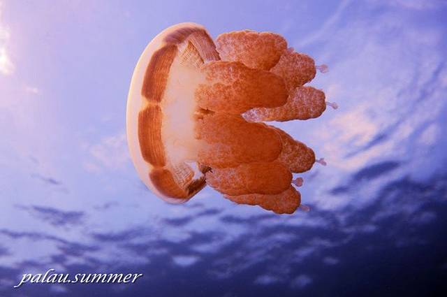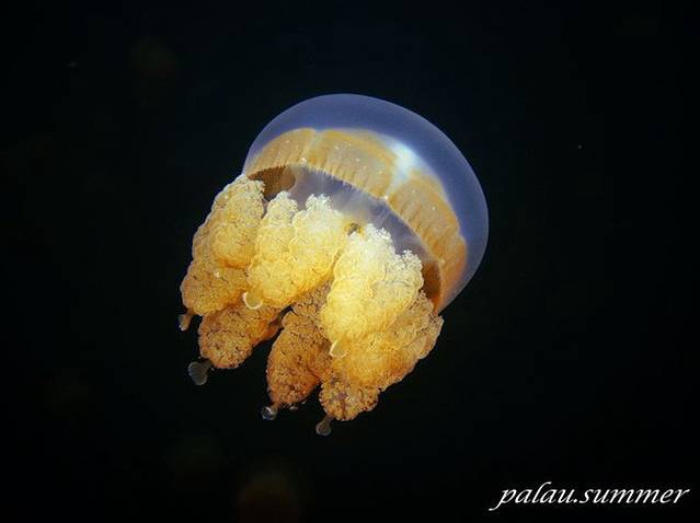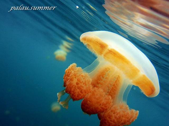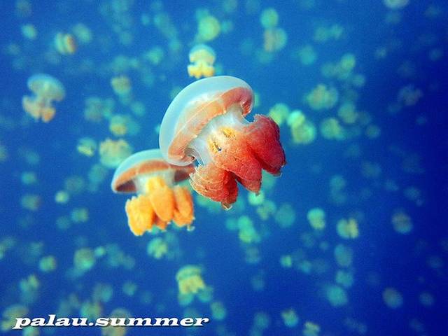 由于天敌们的消失,这些水母“遗失”了祖先用以防卫自身的武器——身体内的毒素。这样,帕劳水母湖拥有了世界上独一无二的无毒水母。 无毒水母为食草性,主要是靠海藻分泌的营养素维生,因此水母散发着淡淡的橘色光茫,湖中亦有大群的银面鱼及透明的月亮水母,全都是温和无毒的。