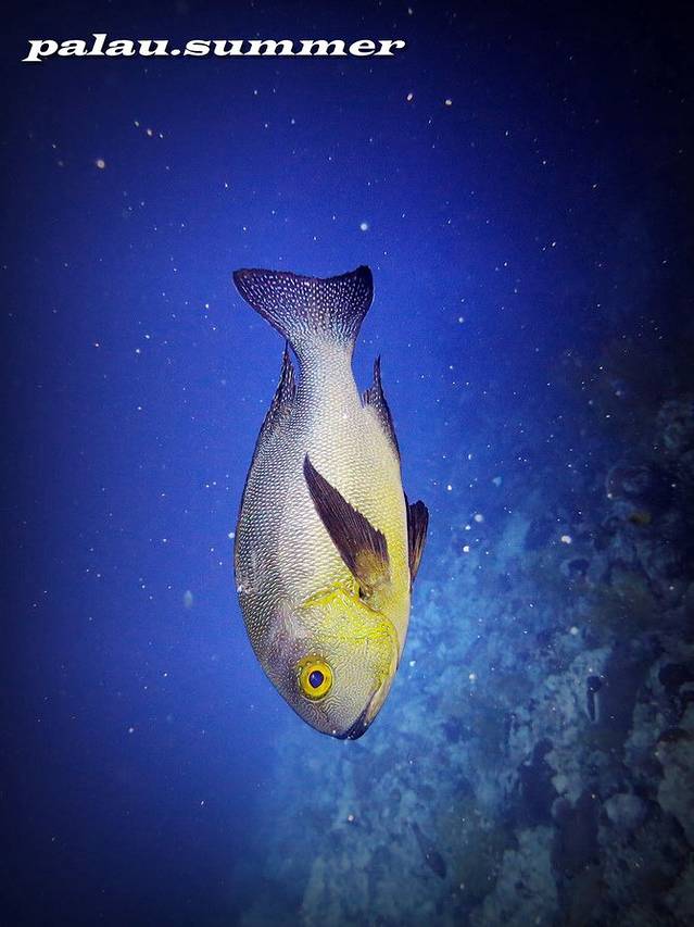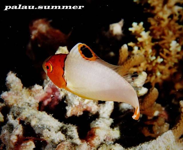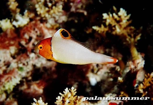 名字的由来估计是因为背鳍上那醒目的黑色圆斑,并有一圈橘红色的边。此外在头部和尾部也有橘红色。