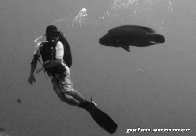 我们很遗憾的赶上了帕劳的雨季,从到帕劳的第一天起,迎接我们的就是暴雨,此后暴雨成了我们的朋友,天天随行,于是我们玩起了捉迷藏,如果有几潜没碰上雨,便会特别开心,但即使不下雨,天也阴沉沉的,也因此海底的能见度并不好,这真是个大遗憾。
