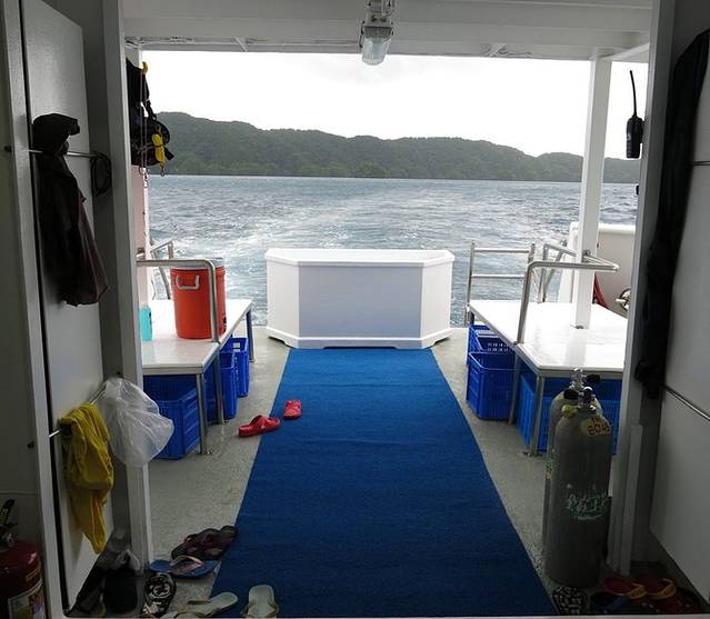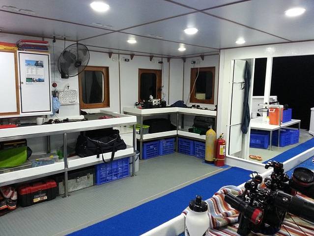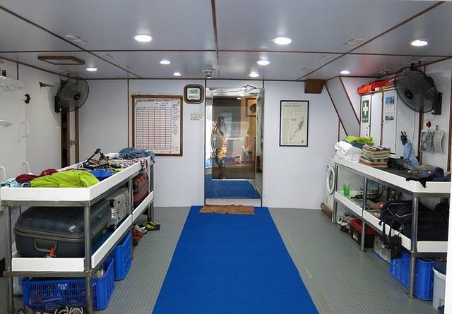 这里是准备装备的地方,潜水时会上另一条跟随的潜水船。