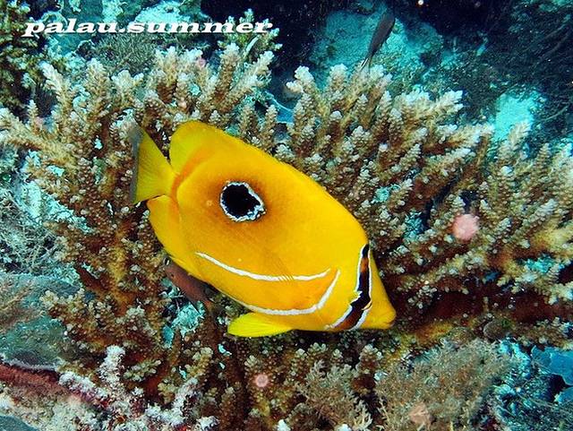 这种蝶鱼通体黄色,贯穿眼部有一条粗黑线,日环食下方有两条银色线条。身长一般在18厘米左右。