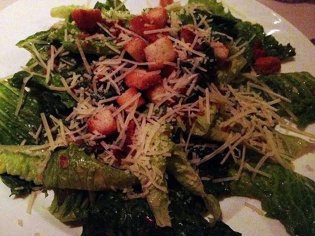 凯撒沙拉是现场制作,放了很多叫不出名字的调料,但过程很有意思。