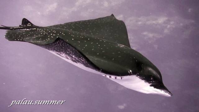 不知为什么,我对这只丑陋的鹰鳐充满了好感,它的伤口让我看到它的勇敢,它的眼神让我看到它的霸气,它的警惕让我看到他的忠诚,它的背影让我看到他的孤寂。