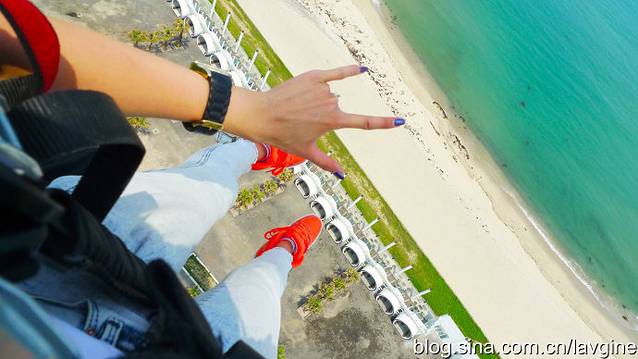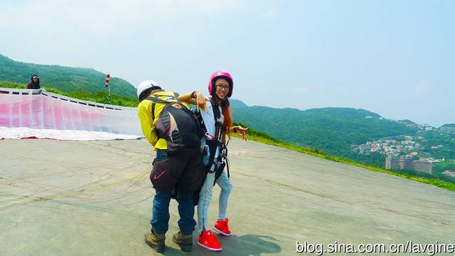 经历了跳伞,滑翔伞的高度还好,不会让我紧张反而让我很迫不及待的要飞下去,飞行伞跟跳伞一样,都会有一个教练在后面掌握伞的方向,除非你有飞行证件,否则不会让你单独行动的;