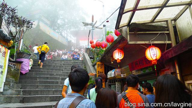 九份的房屋顺应山势,鳞次栉比地盖在一起,狭窄的街道和陡直的石阶,高高低低,弯弯曲曲,是九份最具特色的景观,行走时,你感觉像是走在住家的屋顶上。